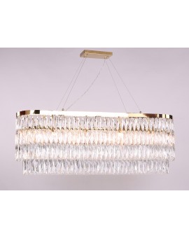 Цвет основания - золото шампань. Кристаллы - прозрачный хрусталь. Габариты люстры 122*28*h.44 см Вес - 39,12, кг Возможен цвет металла - хром.