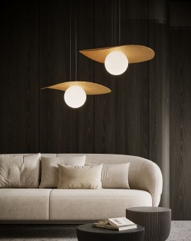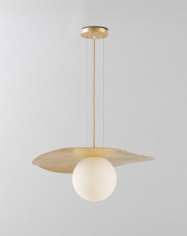 Структура - сталь с эффектом чеканки (цвета: золото/серебро/чёрный велюр/серебро матовое) Стекло - белое матовое Диаметр 70 см Высота - 25 см Высота с подвесом (общая) - 130 см Диаметр розетки крепежа - 16 см Вес - 6 кг 220-240V - 50/60 Hz 1*E27...