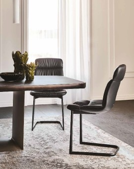 Стул в обивке из ткани или кожи разных категорий. Каркас стула - бронза или никель.
