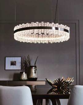 Структура - сталь с эффектом чеканки (цвета: золото/серебро/чёрный велюр/серебро матовое) Стекло - белое матовое Диаметр 70 см Высота - 25 см Высота с подвесом (общая) - 130 см Диаметр розетки крепежа - 16 см Вес - 6 кг 220-240V - 50/60 Hz 1*E27...