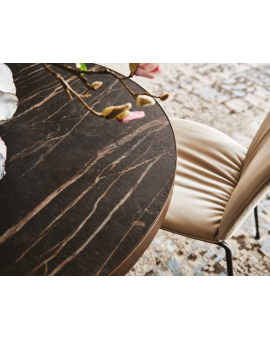 Стол Saturno обеденный круглый. Есть два размера - d.79 см или d.99 см. Основание стола - окрашенная сталь с тиснением титан, графит, черный или матовая бронза. Столешница - керамика Marmi в цветах на выбор по каталогу.