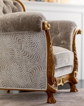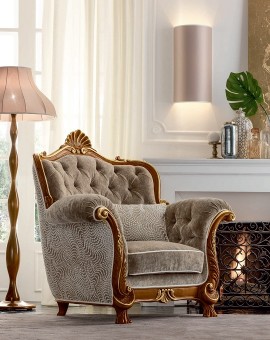 Кресло Charme из массива дерева. Резные детали выполнены вручную. Цвета отделки выбираются по каталогу. Возможна выкраска по линейке RAL.