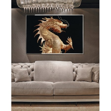Волшебство совсем рядом! Роскошная интерьерная вещь от дизайнера Michele Astolfi. Экзотический золотой Дракон - воплощение природной энергетической силы. Основание картины выполнено из оргстекла, рисунок изящно выложен мозаикой из муранского стекла c кристаллами Swarovski. Стальной каркас картины доступен в различных вариантах отделки металла по образцам из каталога VISIONNAIRE.