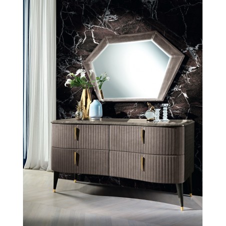 Классическая спальня AURORA итальянской фабрики VILLANOVA MARIO предлагает 5, 4 и 3-дверный шкафы высотой 209 и 250 см, кровати с разными изголовьями и размерами спального места, тумбочки, комод высокий и с 4 ящиками, комод с трюмо, туалетный...