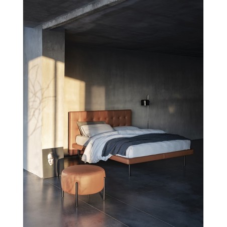 Двуспальная кровать в обивке из натуральной кожи Luxury на высоких ножках.
