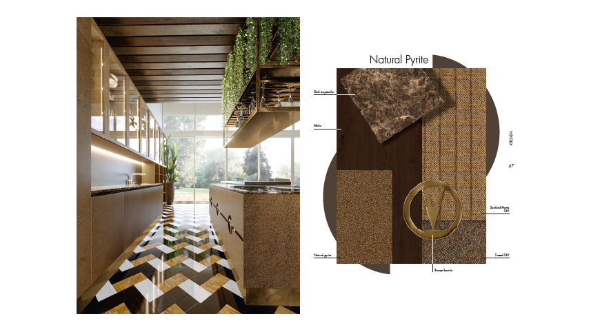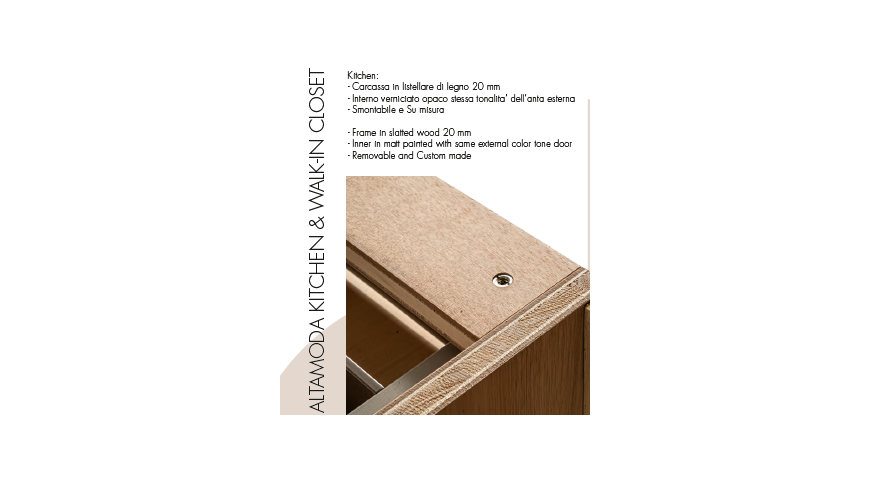 Фабрика ALTAMODA ITALIA представляет новую коллекцию кухонь K005 NATURAL PYRITE. Фабрика изготавливает кухни полностью по индивидуальному проекту не взимая дополнительной платы, проектирует и предоставляет чертежи. Кухни от ALTAMODA полностью деревянные, каркасы выполнены из listellare legno толщиной 20 мм. Возможны дополнительные опции, такие как, окраска в один цвет b фасадов и внутренних поверхностей шкафчиков, также, окраска по каталогу RAL. Все кухни оснащены механизмами BLUM. Аксессуары для внутреннего оснащения шкафов от фирм BLUM и HAFELE.